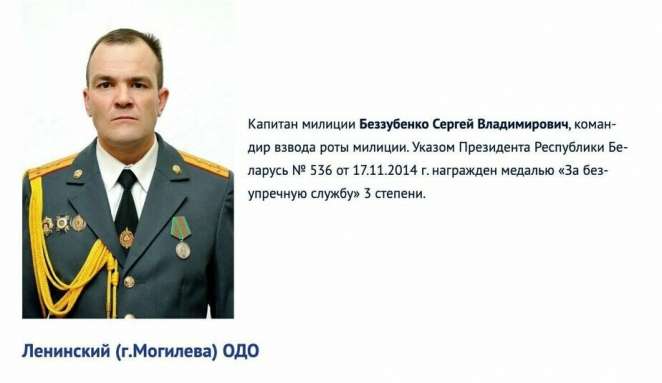 С ним же в компании удостоен медали «За безупречную службу» третьей степени командир взвода роты милиции Департамента охраны Ленинского района Могилева Сергей Беззубенко.