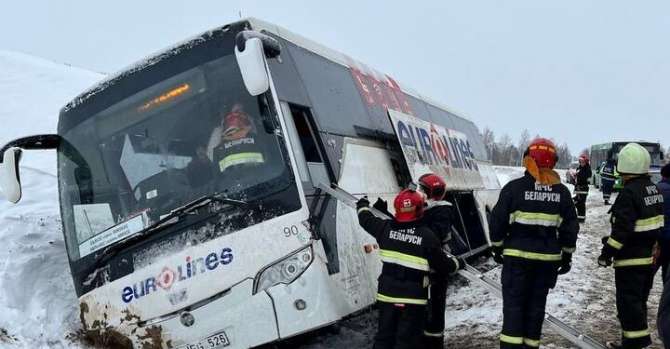 Как сообщает пресс-служба МЧС, авария произошла возле деревни Шараи Воложинского района. Спасатели провели работы по открытию заблокированных снегом дверей автобуса.