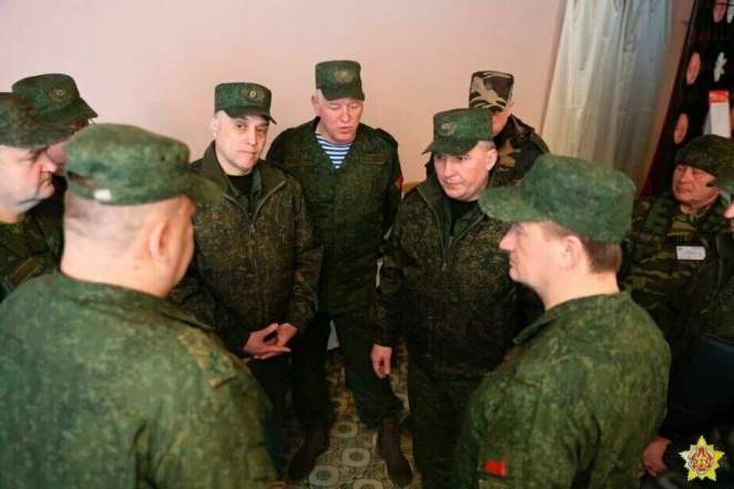 Вместе им занятия инспектировали госсекретарь Совета безопасности генерал-лейтенант Александр Вольфович, министр обороны Республики Беларусь генерал-лейтенант Виктор Хренин, начальник Генерального штаба Вооруженных Сил — первый заместитель министра обороны Республики Беларусь генерал-майор Виктор Гулевич.