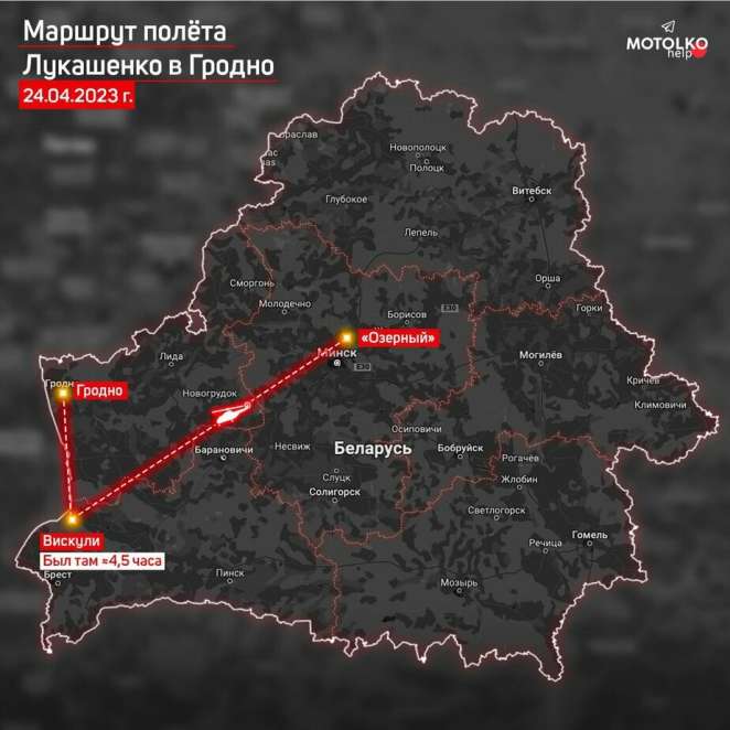 «Первое уведомление от пропагандистов, что он улетел из Минска поступило лишь после 16:00, когда он приехал на хоккей в Гродно. Но ещё утром очевидцы заметили, что его вертолёт летел на запад со стороны резиденции «Озерный» (та, что под Острошицким городком).