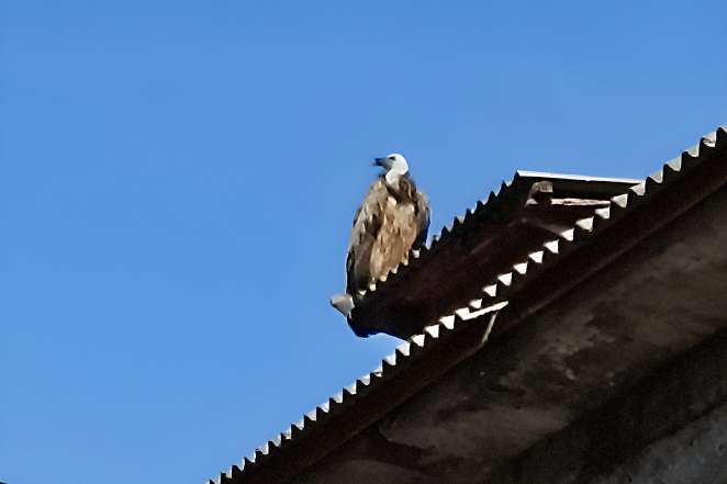 Белоголовый сип на крыше школы в Сафоновском районе Смоленщины. Фото Тамары Васькиной