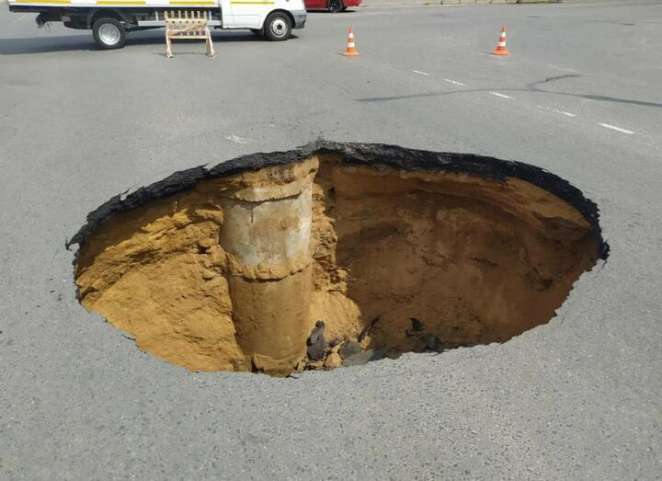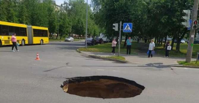 Фото провала на дороге в Барановичах. 19 июня 2023 года. Фото: BrestCITY