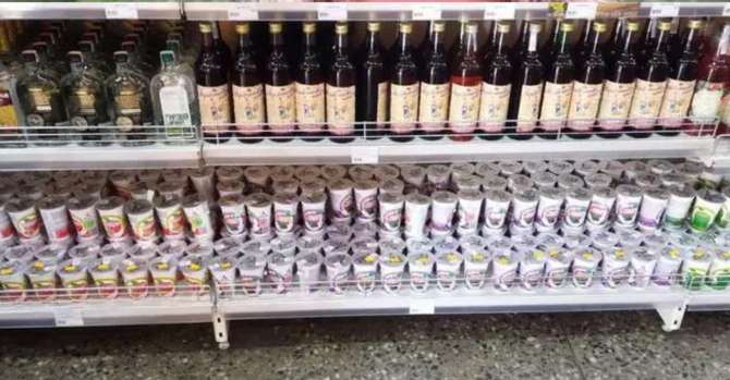 На 250-граммовых пластиковых стаканчиках красуются названия — «Фрутвейн яблочно-черносмородиновый», «Слонимски пачастунак» (причем второе название неправильно как на беларусском, так и на русском языке).