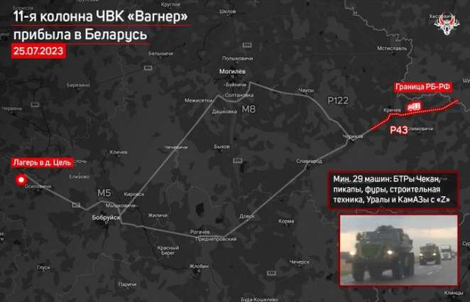 В данный момент колонна едет по трассе Р43 (участок Кричев — Чериков). «Беларускі Гаюн» предполагает, что далее наемники могут двигаться следующими маршрутами: