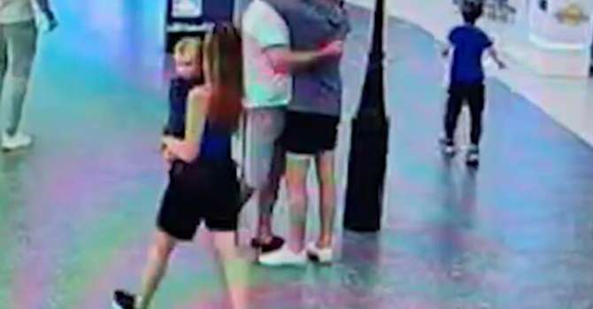 На видео с камер наблюдения в торговом центре заметно, что мужчина и парень обнялись, а после старший из них ударил другого ножом. Посетители ТЦ при этом проходили мимо, рядом бегали дети.
