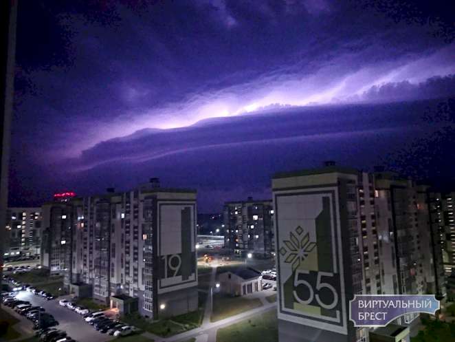 Буря грянула в Бресте поздно вечером, примерно в 22.40, во вторник и продолжалась несколько часов.