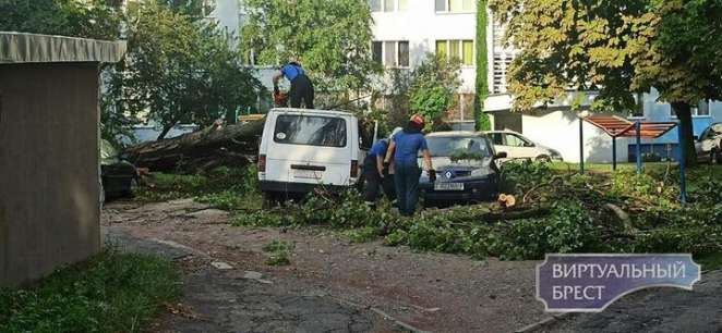 Брестчане сообщали об упавших деревьях и поврежденных автомобилях.
