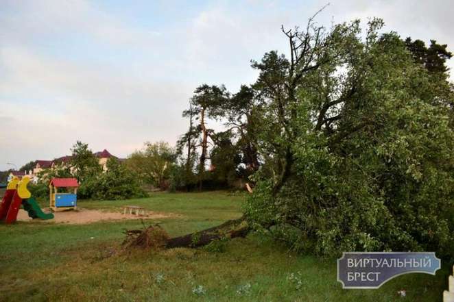 Наутро опасения подтвердились: стихия наделала немало бед в Бресте и окрестностях. Некоторые населенные пункты в Брестском районе всю ночь были обесточены — электричество пропало там в самом начале грозы. А в аварийную службу невозможно было дозвониться.