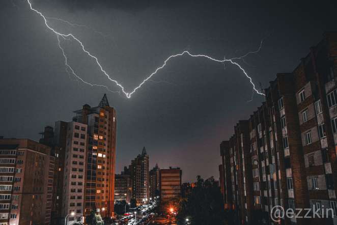 Гроза в Бресте в ночь на 30 августа. Фото: телеграм-канал «Виртуальный Брест»