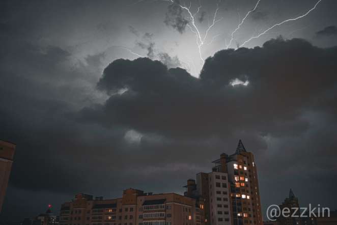 Практически сразу начались непрерывные молнии с громом, сильный дождь и шквалистый ветер.