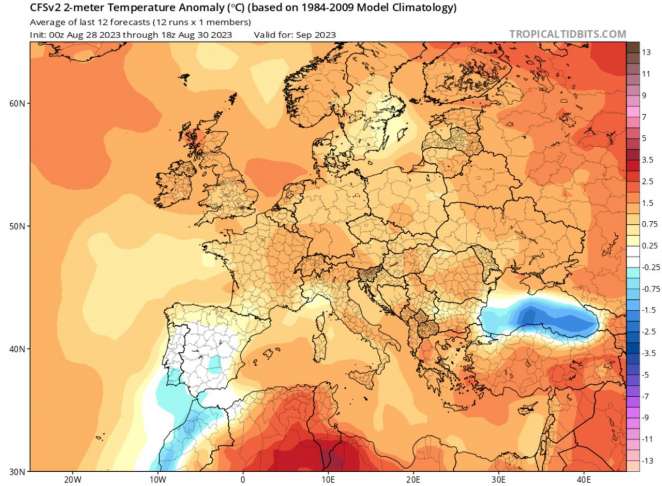 По расчётам той же модели CFSv, в сентябре в Беларуси будет также теплее обычного — в среднем на 1,5–2,0° выше многолетних значений.