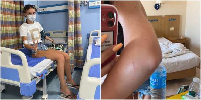 По дороге на курорт девушка чувствовала себя нормально. Рука болела, согнуть ее в локте было невозможно, но температуры и других симптомов не было. Мария почитала в интернете, что делать при укусе животных, и поняла, что могут понадобиться прививки от столбняка и бешенства. Тогда молодые люди нашли страховой полис и начали звонить по указанным номерам.