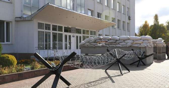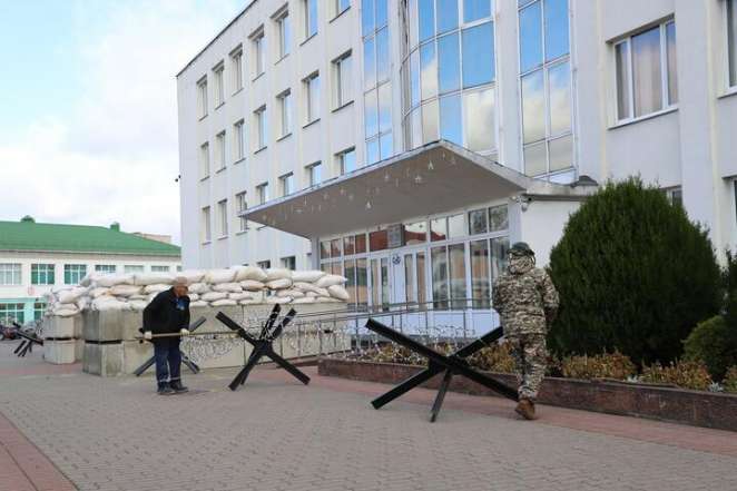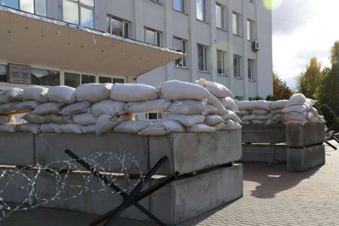 Райисполком в Ивацевичах огородили противотанковыми ежами и колючей проволокой