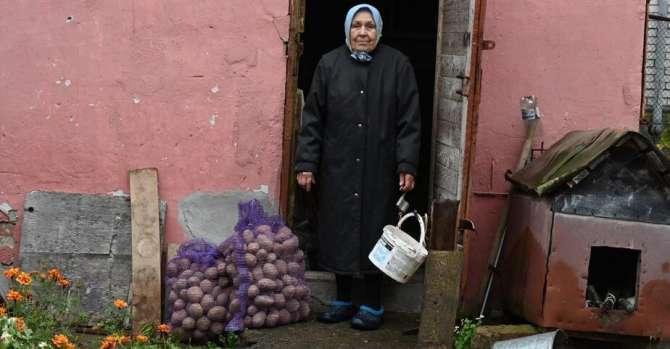 Тамара Зенченко с сетками картофеля. Фото: Совет Республики