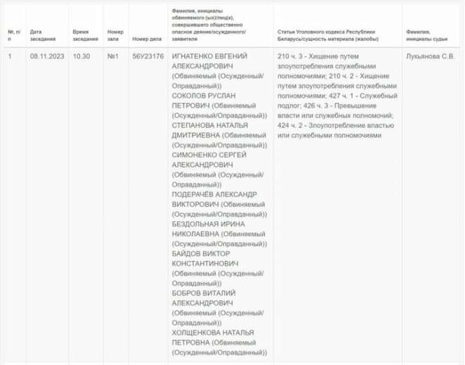 Также среди фигурантов дела — глава сельхозпредприятия «Жгунское» Наталья Степанова, директор ОАО «Красная Буда» Ирина Бездольная и другие обвиняемые.