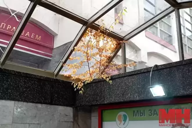Деревце под стеклянной крышей выросло уже достаточно крупных размеров и ему тесно. А в Минском городском комитете природных ресурсов и охраны окружающей среды объяснили, что просто так его якобы не вырвешь и не урежешь: ведь существует порядок удаления объектов растительного мира.