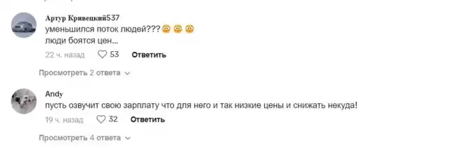 «Уменьшился поток людей??? Люди боятся цен», — добавляет другой.