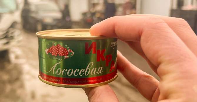 Дешевой приносят сразу пять банок. Тут готовы на мелкий опт, но мы забираем одного «Персея» — завод не существует, но икра с него никак не закончится.