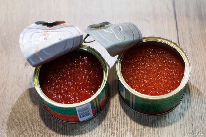 Этикетки говорят что-то про икру, соль, масло, консерванты, но чудес за 10 рублей не бывает: внутри надули желатиновых пузырей икорного фальсификата, которые никак не хотят лопаться.