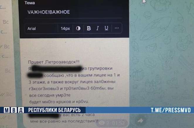 Одно из сообщений, отправленное подростком. Скриншот видео МВД