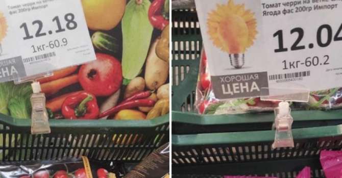 Что касается надписи «Хорошая цена», то есть единый дизайн для ценников, обозначающий неакционные товары, пояснили в сети. Пример как раз на фото в этом тексте.