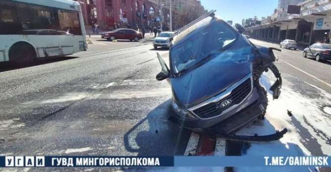 В центре Минска водитель Kia почувствовал себя плохо и снес дорожный знак