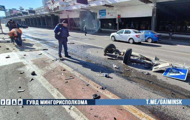 Последствия аварии на улице Немига в Минске, 10 марта 2024 года. Фото: ГАИ
