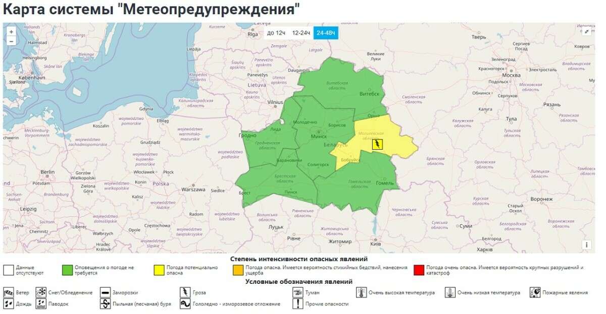 Карта неблагоприятных метеоявлений, Белгидрометцетр