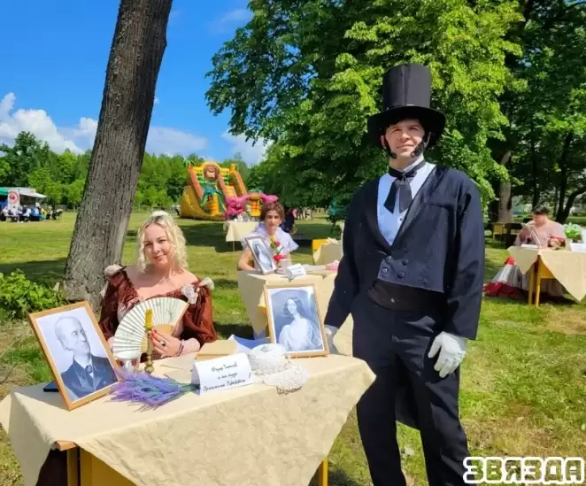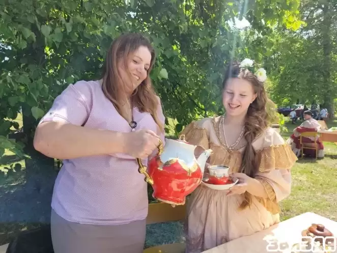 — Приглашаю в гости! Эрнестина фон Пфефель, — презентовала локацию Централизованной библиотечной сети Гомельского района — литературное чаепитие с музами классиков литературы — сотрудник Центральной библиотеки Гомельского района Екатерина Копаткова: «Воссоздали образы муз Тютчева, Грибоедова, Пушкина, Тургенева, Некрасова. Работали над образами долго, ведь подбирали прически, наряды, чтобы максимально быть похожими на знаменитых дам.