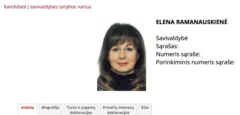 В прошлом году она была кандидатом на выборах в городской совет Друскининкае от комитета «За Друскининкай», но избрана не была. Собственно говоря, из анкеты, опубликованной тогда литовским ЦИК, и стали известны ее основные биографические сведения.