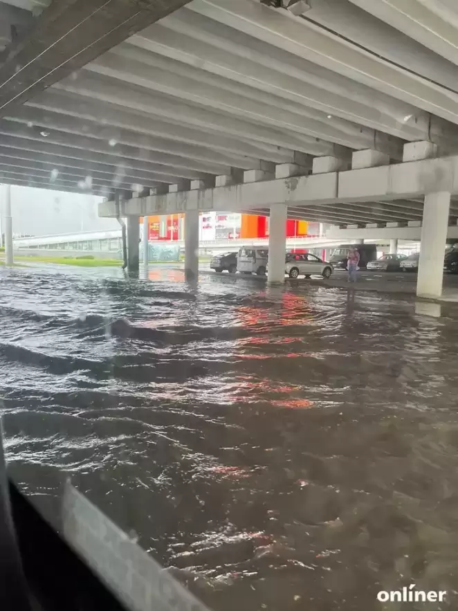 Возле ТЦ Palazzo под мостом образовалось стихийное озеро, пишет Onliner.