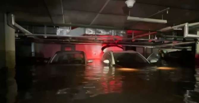 Утонувшие в столичном подземном паркинге автомобили. Скриншот: видео МЧС