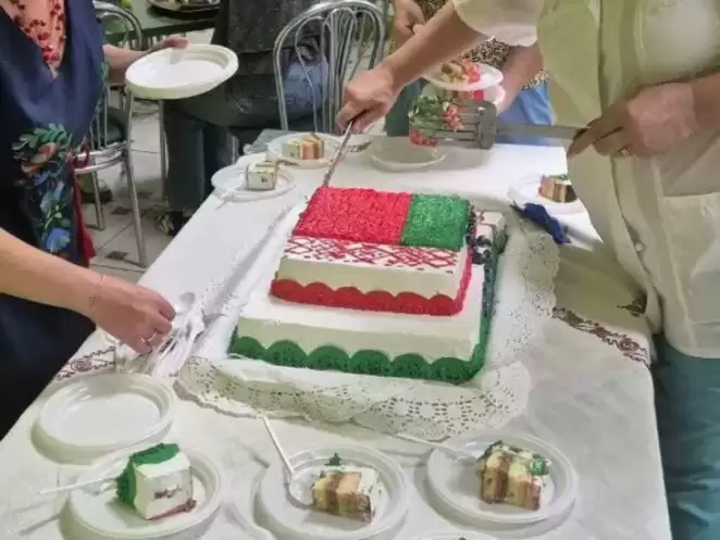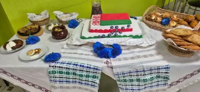 В рядах столовых и государственных ресторанах «День народного единства» объявили единым днем национальной кухни. В такой ситуации готовили бабку, драники, яичницу, сырники и другие блюда, которые вспоминали местные повара. Но на Калинковичском молочном комбинате национальным блюдом назвали торт, который украсили в виде государственного флага, пишет издание «Штодзень».