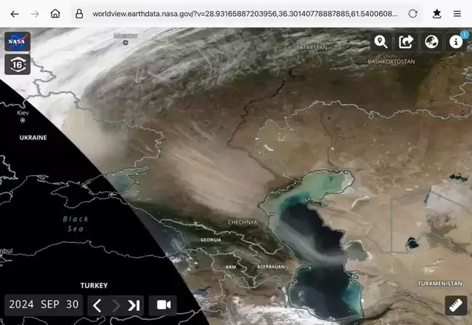 Из прикаспийских степей сильный ветер поднял большое количество пыли, которая заметно распространяется по региону. Поскольку на территориях Казахстана и Туркменистана наблюдаются сильные ветры, эта пыль будет распространяться дальше и, вероятно, достигнет Беларуси, сообщает телеграм-канал @nadvorie.
