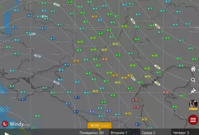 На карте представлены фактические данные о скорости и направлении ветра в Прикаспийском регионе, что позволяет лучше понять воздействие природного явления и его возможные последствия для окружающей среды и населения.