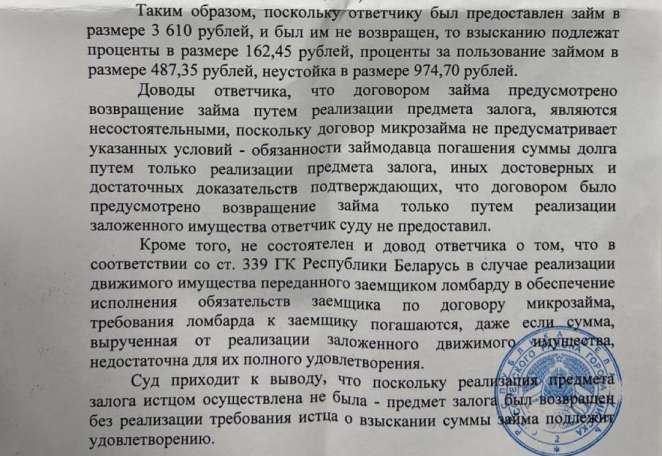 За комментарием мы также обратились к представителю ломбарда «Висем». По его мнению, заплатить сумму основного долга без процентов и неустойки клиент мог еще в мае, но тогда он не захотел идти на диалог, чем и вынудил организацию обратиться в суд.
