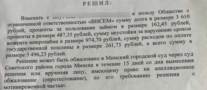 На какое-то время конфликт затих, но в июне Павел получил от ломбарда иск. В суде организация требовала вернуть уже бо́льшую сумму — 5234,5 рубля — с учетом неустойки и процентов за пользование чужими деньгами. Плюс ответчику светила госпошлина в 261 рубль. Итого после суда Павел должен вернуть 5496,23 рубля.