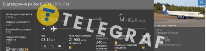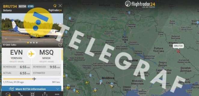 Рейс B2734/BRU734 вылетел из Армении в 6:55 утра и приземлился в Беларуси в 9:55. За почти четыре часа полета самолет, согласно карте Flightradar24, залетел и на территорию Украины на востоке. Борт якобы долетел до Харькова, а затем вышел из закрытого воздушного пространства.