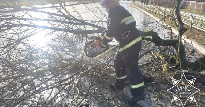 «Зафиксированы 27 случаев падения деревьев в Брестской (7), Гродненской (17), Минской (1) областях и Минске (2), повреждены кровли 11 жилых домов. В деревне Волчки Слонимского района разрушено сельскохозяйственное здание коровника. Произошло падение четырех новогодних елей: три случая в Гродно и один в Заславле Минской области», — рассказали спасатели.
