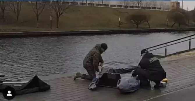 Тело Антона Мазура было извлечено из воды сотрудниками милиции. Как видно на фото, он утонул в Свислочи.