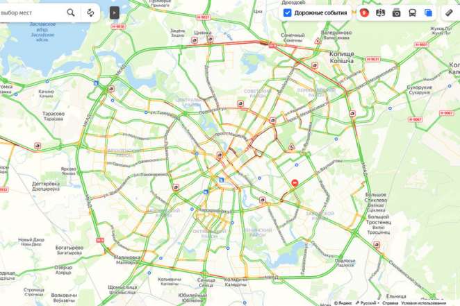 Вечером пятницы Минск погряз в длительных автомобильных заторах. По данным сервиса «Яндекс.Пробки», сейчас в Минске 9-балльные пробки. Наибольшие затруднения — в центре города и северо-восточной части, пишет blizko.by.