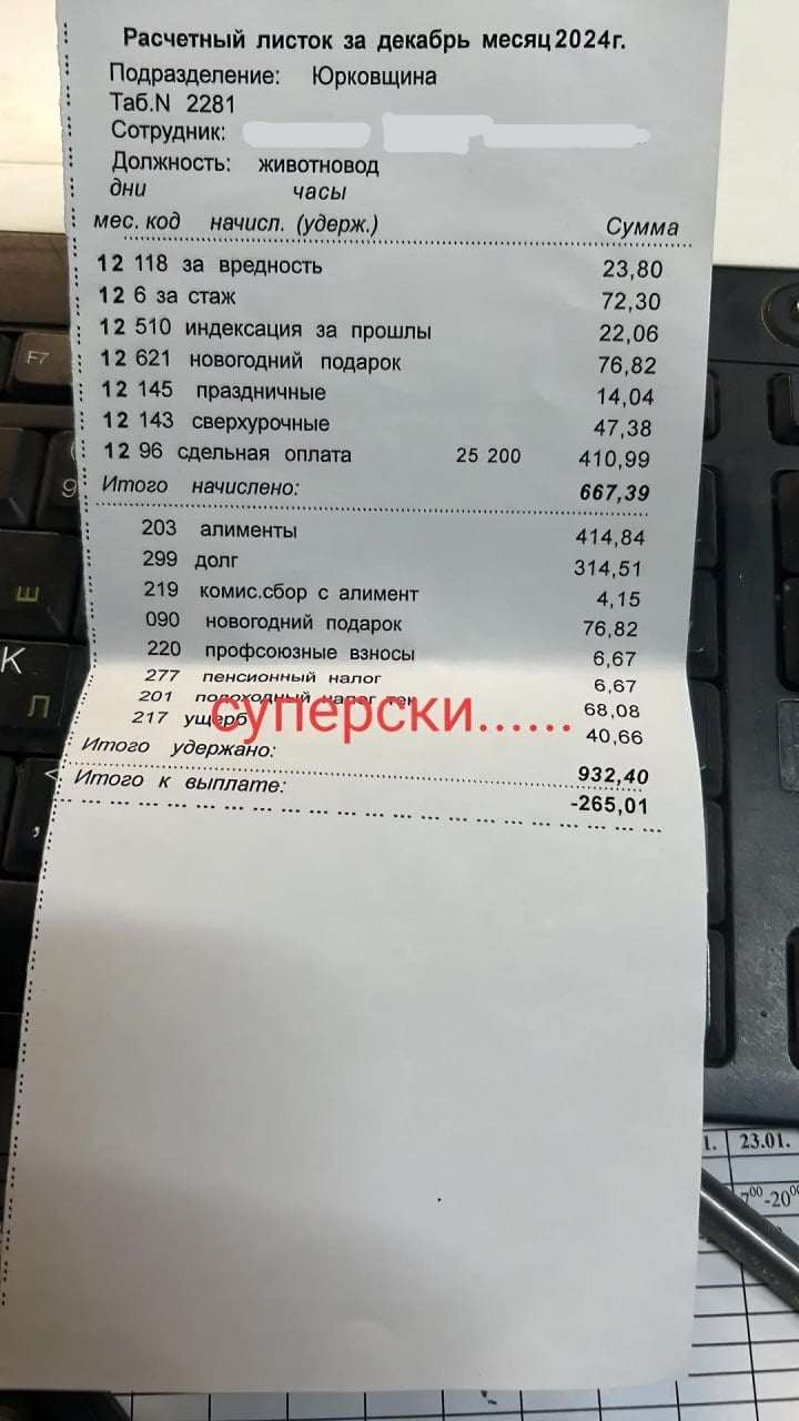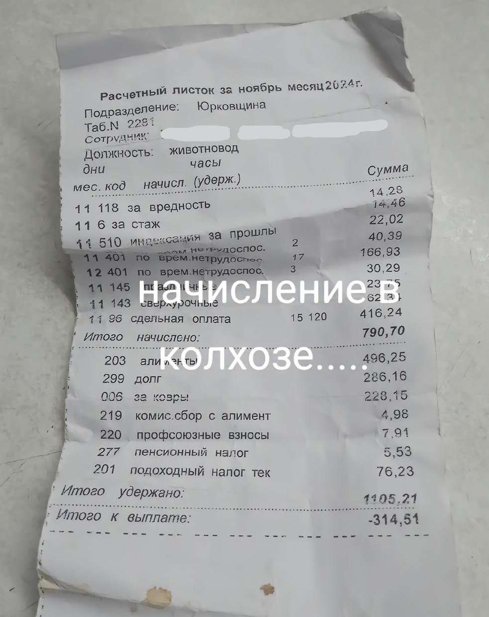 Белоруска поделилась двумя расчетниками. Как оказалось, после зарплаты она оказалась должна колхозу.