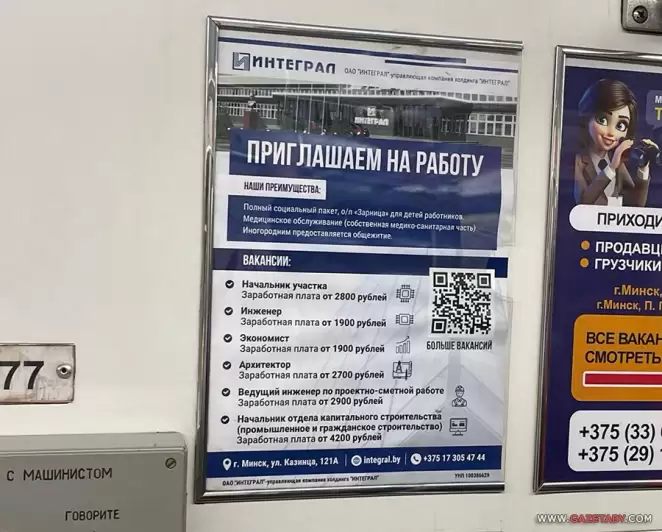 Напомним, эти же объявления о вакансиях на этом предприятии размещались в минском метро и ранее. Выходит, проблема с кадрами там все еще актуальна.