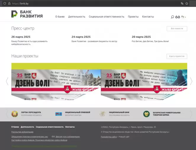 «Киберпартизаны» разместили на сайте Банка развития Беларуси иллюстрации с поздравлениями ко Дню Воли, который отмечался 25 марта.