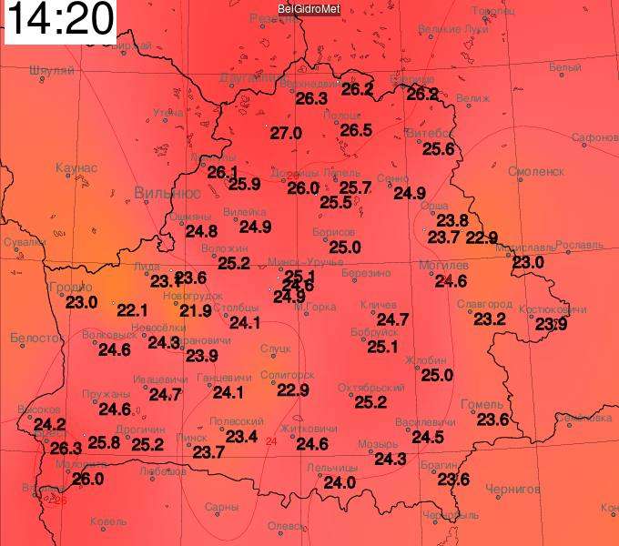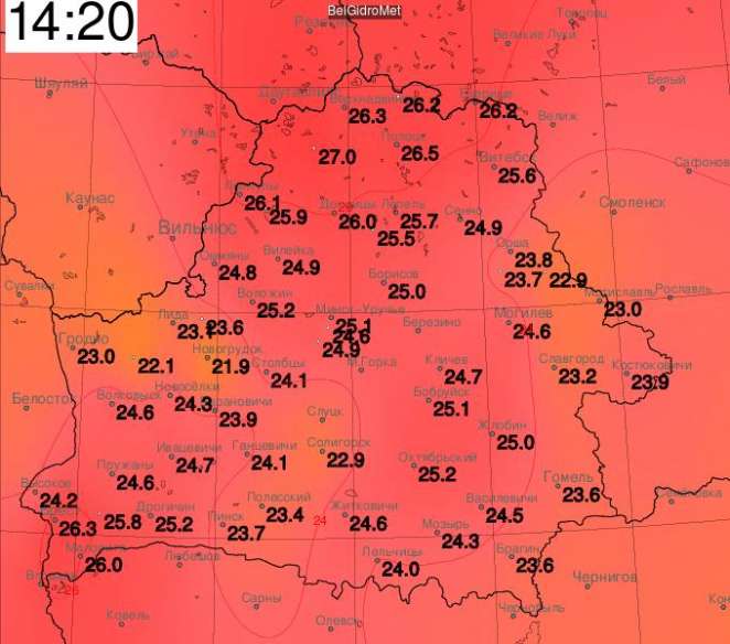 В Верхнедвинске воздух прогрелся до 27,9 градуса. Дневной максимум до этого составлял 22,1 (18 апреля 1959 года), месячный — 27,2 (23 апреля 1950 года).