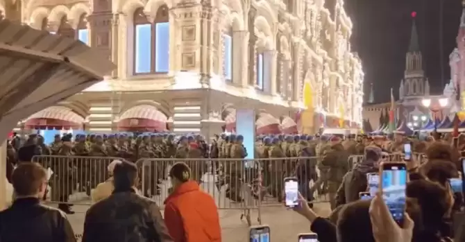 Минобороны хвалится, что видео, снятое во время репетиции парада на Красной площади в Москве, якобы посмотрели сотни тысяч человек.