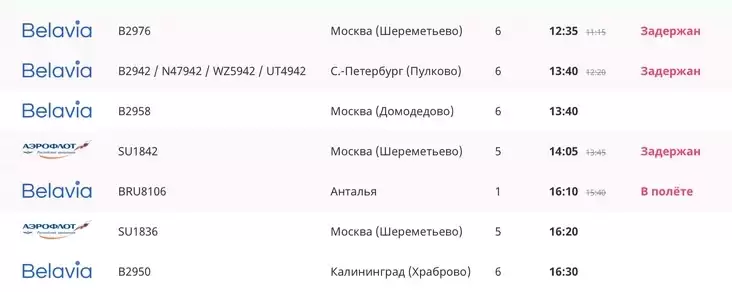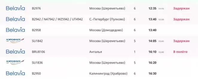 На онлайн-табло Национального аэропорта Минск сообщается о массовых задержках как вылетающих, так и прилетающих в столицу рейсов.