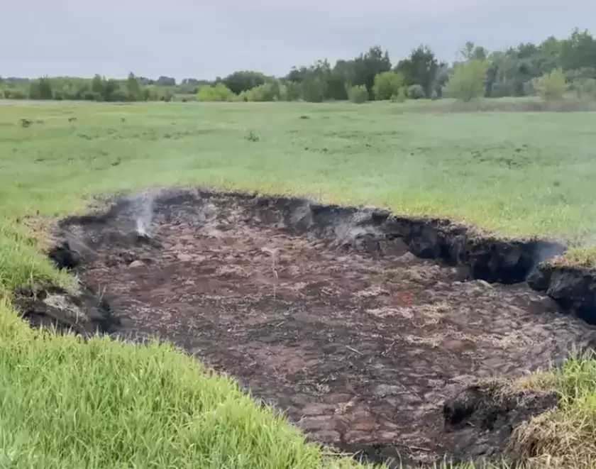 В Брестском районе мужчина снял на видео необычное тёмное пятно посреди зелёной поляны. От пятна шел дым.