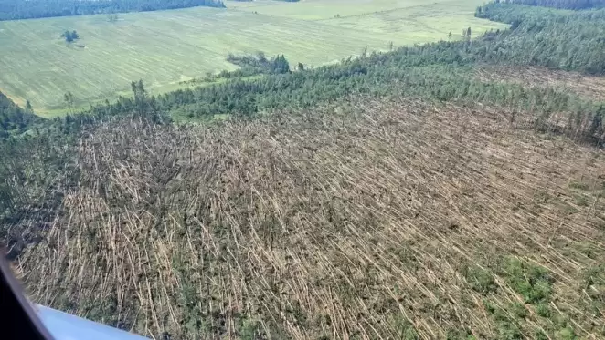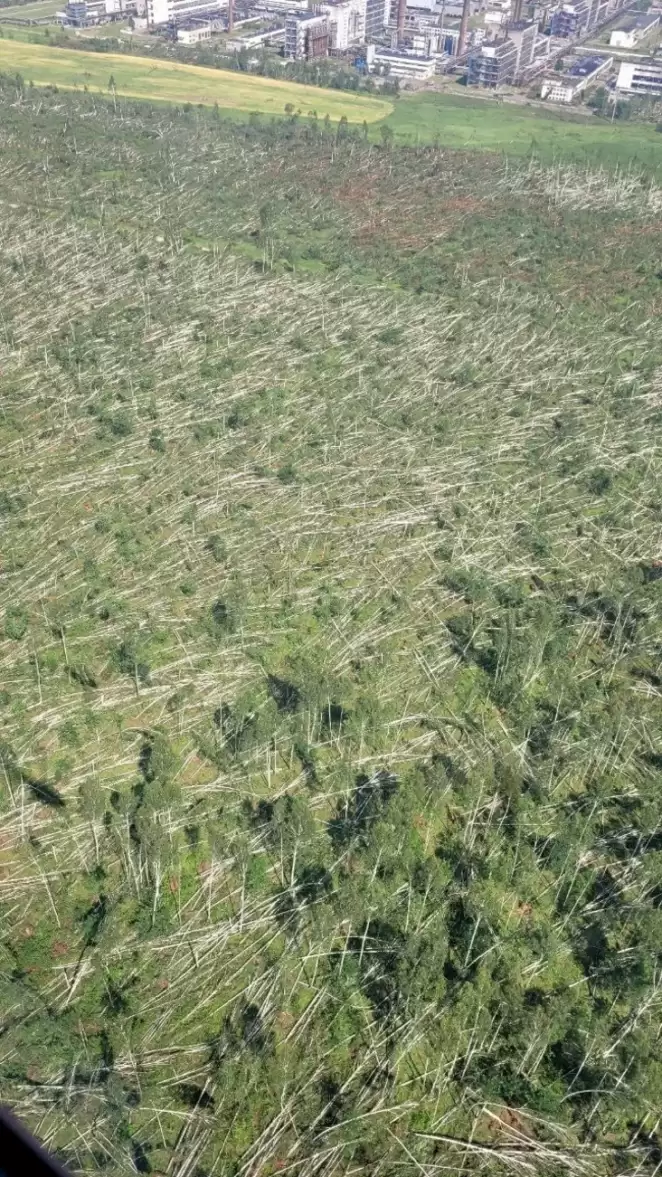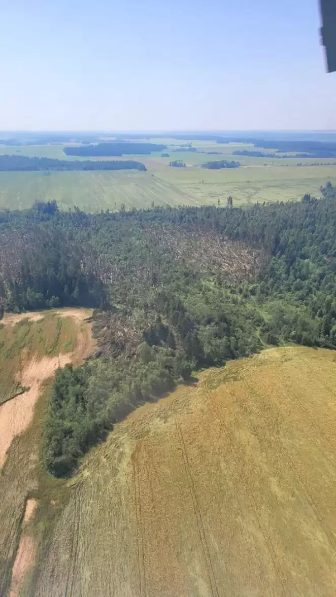 Вот как выглядит поваленный бурей лес под Могилевом с высоты птичьего полета.