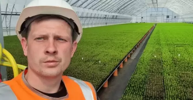 Денис Козенко на работе в теплице, которую устанавливает его компания. 3 июля 2024 года. Фото: страница в Instagram